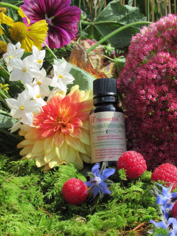 Tropfen, Creme, Lippenpflege - handgefertigt aus natürlichem Bienenharz. Wohltuend für Immunsystem, Haut und Stimme
